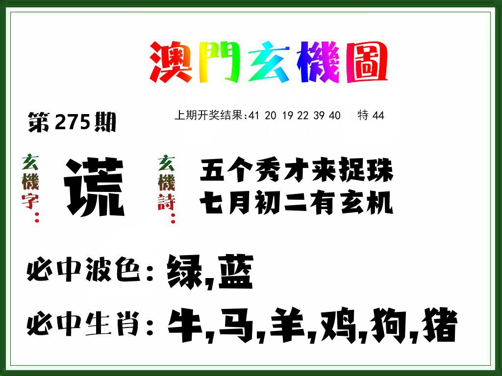 275期 | 男:猴鼠狗马 | 女:猪蛇鸡羊 | 中:?? |